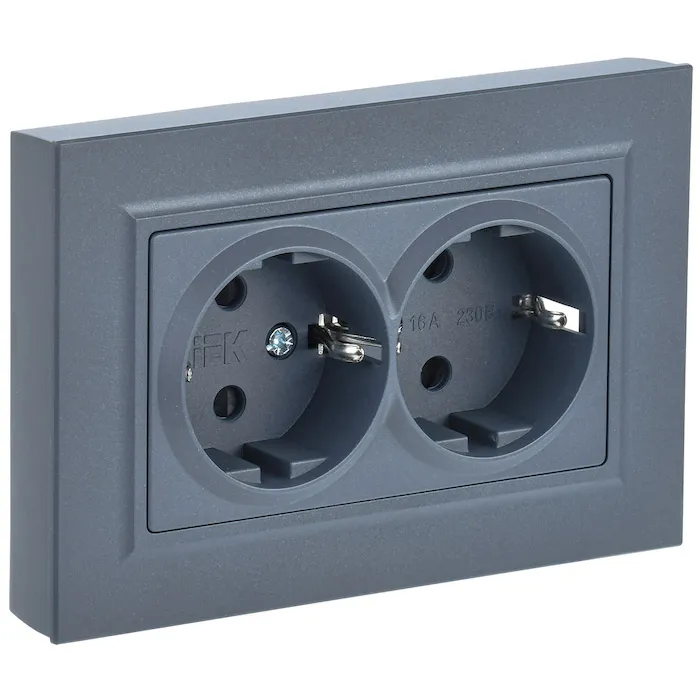 Розетка 2-местная с заземлением без защитных шторок IEK BRITE 16А в сборе РС12-3-БрМ маренго, BR-R21-16-K35-F, Нижний Новгород