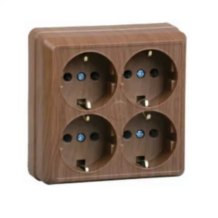 Розетка четырехместная IEK ОКТАВА, открытый монтаж, с заземлением, дуб, ERO41-K04-16-DC, Нижний Новгород