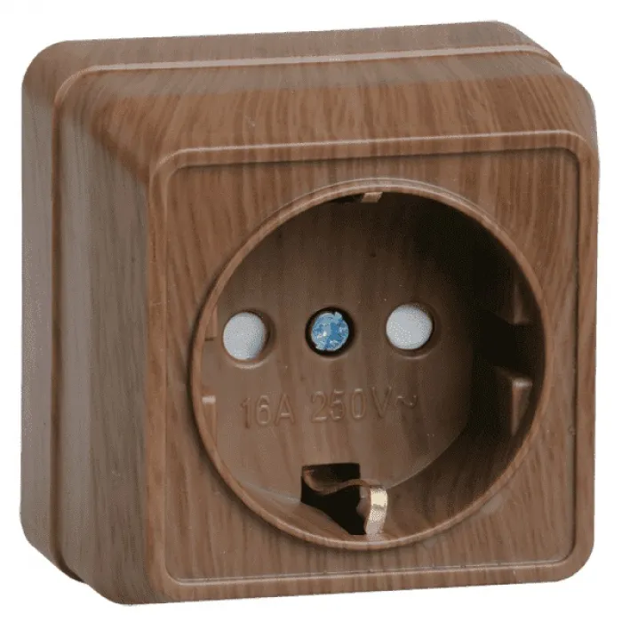 Розетка IEK ОКТАВА, открытый монтаж, с заземлением, со шторками, дуб, ERO14-K04-16-DC, Нижний Новгород