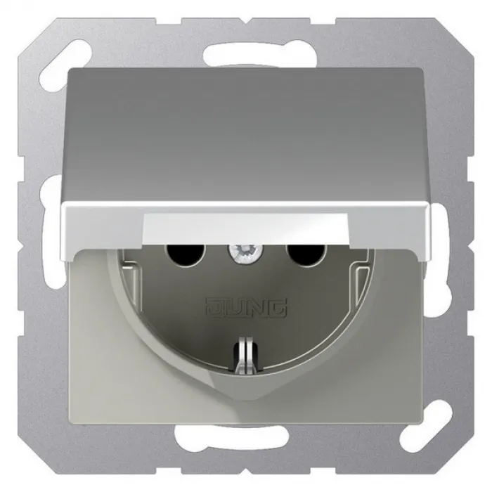 Розетка Jung A 500, скрытый монтаж, с заземлением, с крышкой, алюминий, A1520BFKLAL, Нижний Новгород