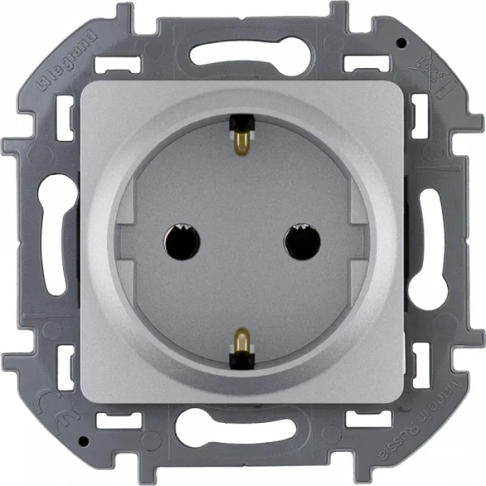 Розетка 2К+З со шторками - немецкий стандарт - 16 А - 250 В~ - INSPIRIA - алюминий, Нижний Новгород