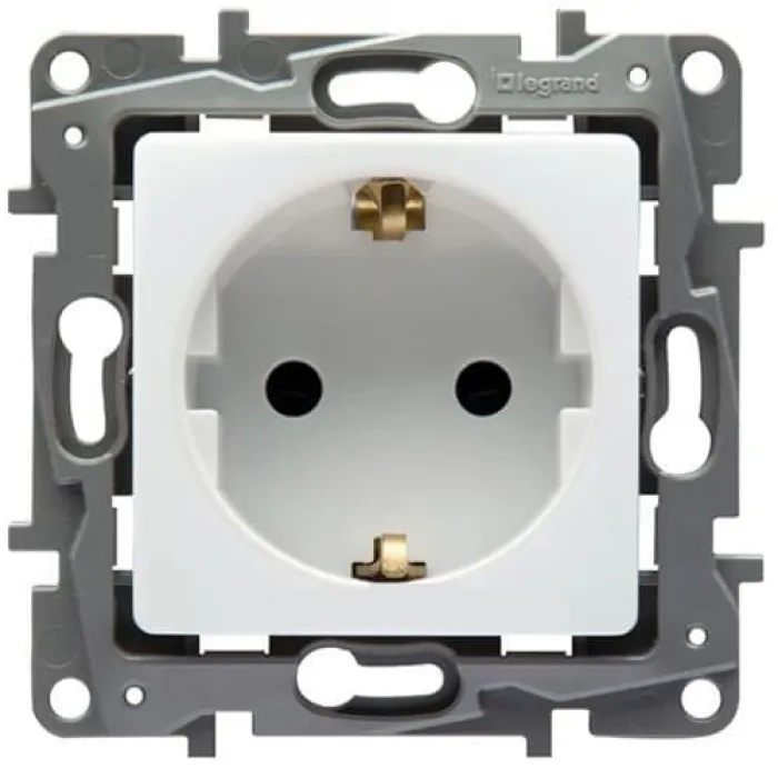 Розетка Legrand ETIKA, скрытый монтаж, с заземлением, со шторками, белый, 672222, Нижний Новгород