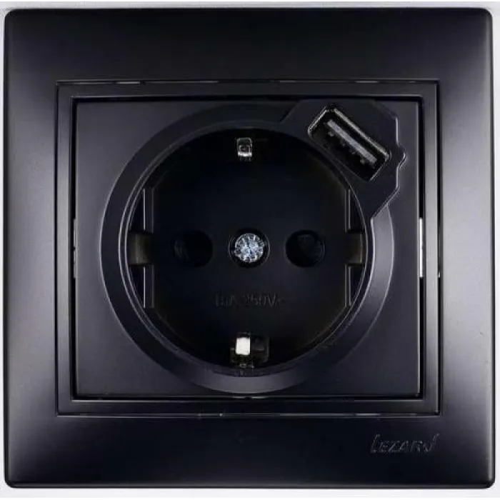 Розетка 1-м СП Мира 16А с з/к + USB разъем черн. бархат LEZARD 701-4242-181, Нижний Новгород