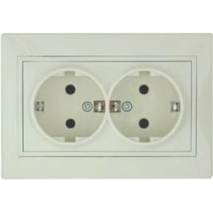 Розетка двойная з/к (керамика). Особенности заключаются в европейском дизайне. в повышенной безопасности негорючего поликарбонатного ПК-пластика. в более прочном и устойчивом к механическому воздействию покрытии. в простом монтаже и демонтаже.Напряжени