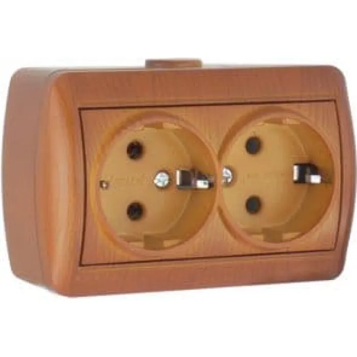 Розетка двойная с/з. Особенности заключаются в европейском дизайне. в повышенной безопасности негорючего поликарбонатного ПК-пластика. в более прочном и устойчивом к механическому воздействию покрытии. в простом монтаже и демонтаже. Изделия с расцветкой «