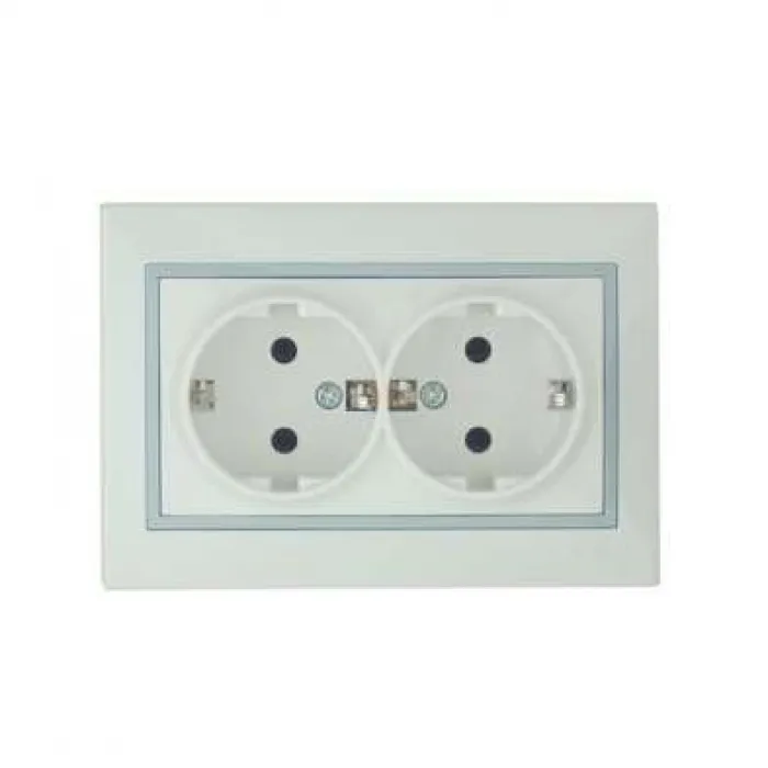 Розетка двойная з/к (керамика). Особенности заключаются в европейском дизайне. в повышенной безопасности негорючего поликарбонатного ПК-пластика. в более прочном и устойчивом к механическому воздействию покрытии. в простом монтаже и демонтаже.Напряжени