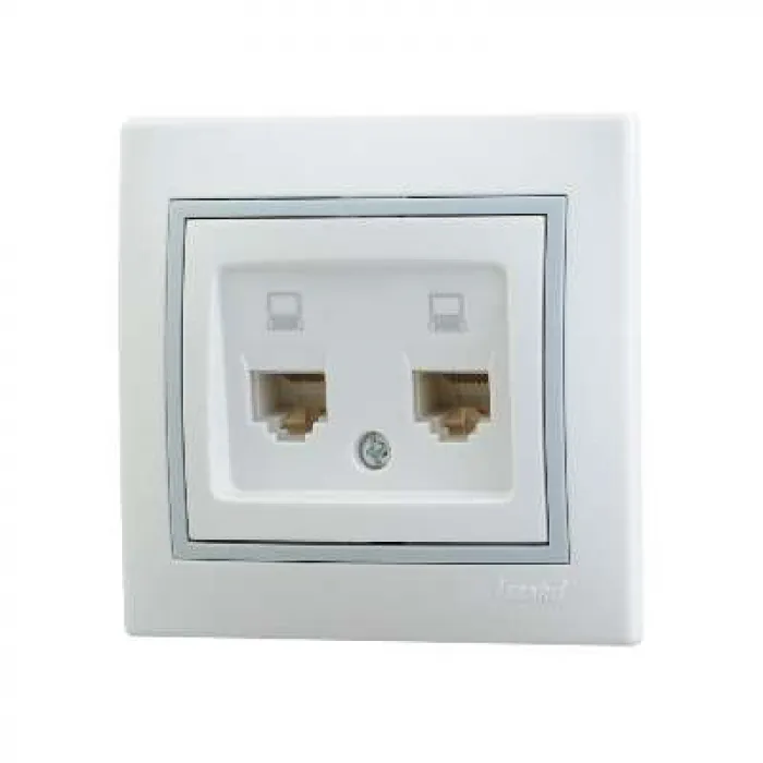 Розетка компьютерная двойная. Особенности заключаются в европейском дизайне. в повышенной безопасности негорючего поликарбонатного ПК-пластика. в более прочном и устойчивом к механическому воздействию покрытии. в простом монтаже и демонтаже.Напряжение,