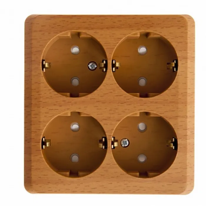 Розетка четырехместная Schneider Electric ETUDE, открытый монтаж, с заземлением, со шторками, бук, PA16-208T, Нижний Новгород