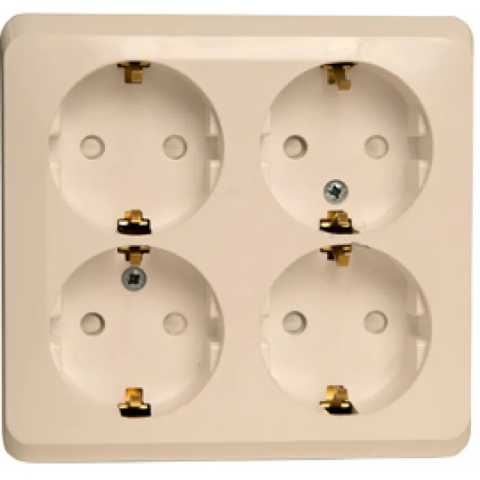 Розетка четырехместная Schneider Electric ETUDE, открытый монтаж, с заземлением, со шторками, кремовый, PA16-208K, Нижний Новгород