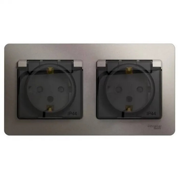 Розетка двойная с заземлением со шторками в сборе IP44 SE Glossa, платина, Нижний Новгород