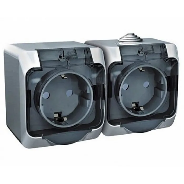 Розетка двухместная Schneider Electric ETUDE, открытый монтаж, с заземлением, с крышкой, со шторками, серый, PA16-244C, Нижний Новгород