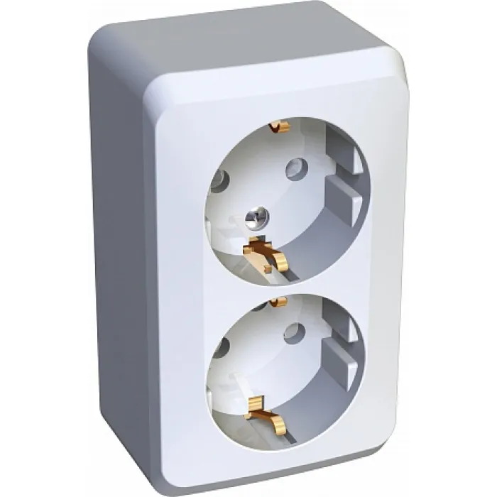 Розетка двухместная Schneider Electric ETUDE, открытый монтаж, с заземлением, со шторками, белый, PA16-008B, Нижний Новгород