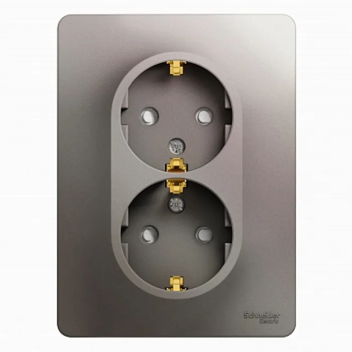 Розетка двухместная Schneider Electric GLOSSA, скрытый монтаж, с заземлением, со шторками, платина, GSL001226, Нижний Новгород