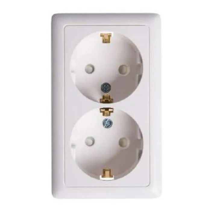Розетка двухместная Schneider Electric HIT, открытый монтаж, с заземлением, со шторками, белый, RA16-239-B, Нижний Новгород