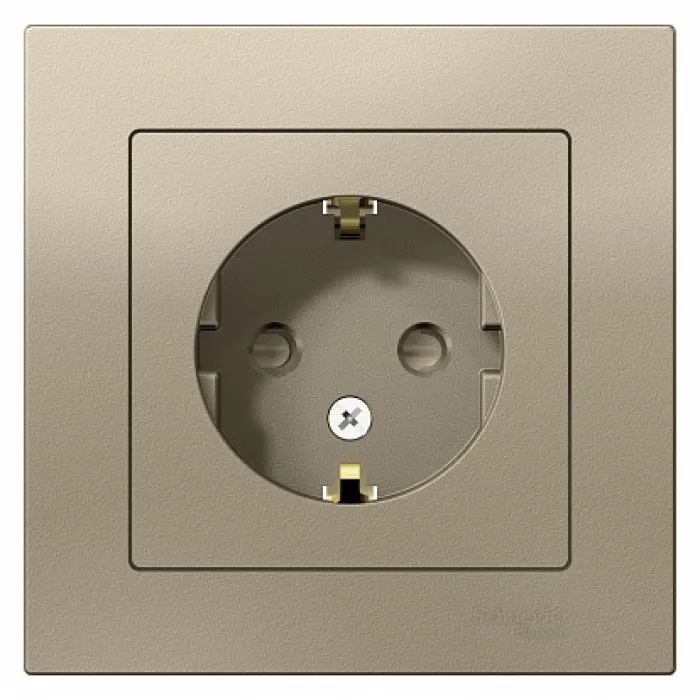 Розетка Schneider Electric ATLASDESIGN, скрытый монтаж, с заземлением, со шторками, шампань, ATN000544, Нижний Новгород