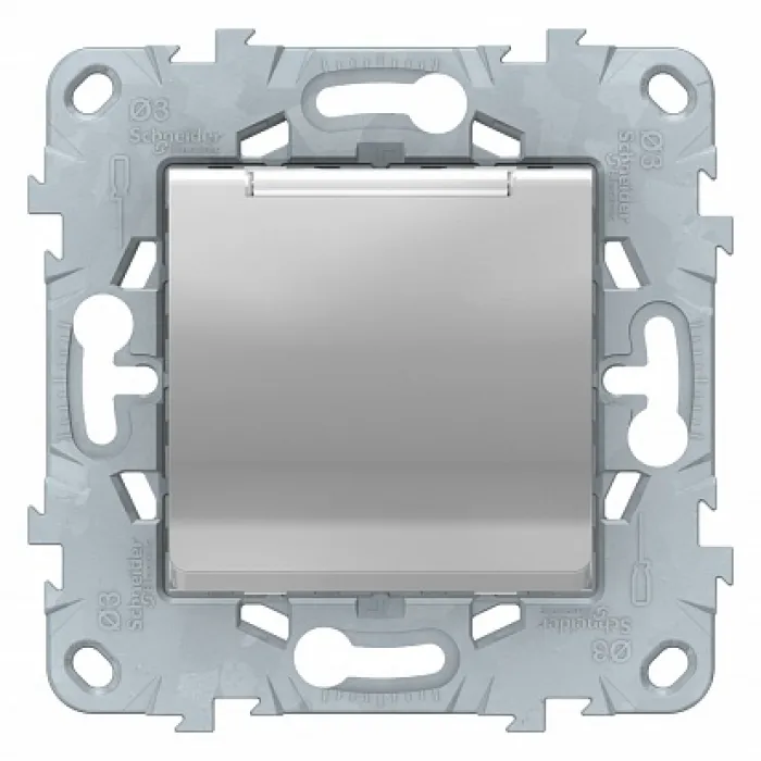 Розетка Schneider Electric UNICA NEW, скрытый монтаж, с заземлением, с крышкой, со шторками, алюминий, NU503730TA, Нижний Новгород