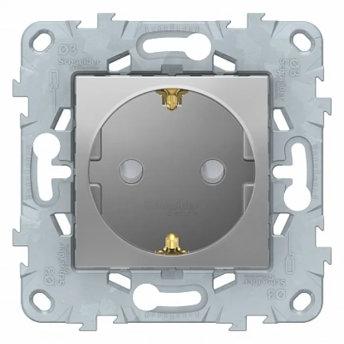 Розетка Schneider Electric UNICA NEW, скрытый монтаж, с заземлением, со шторками, алюминий, NU505730, Нижний Новгород