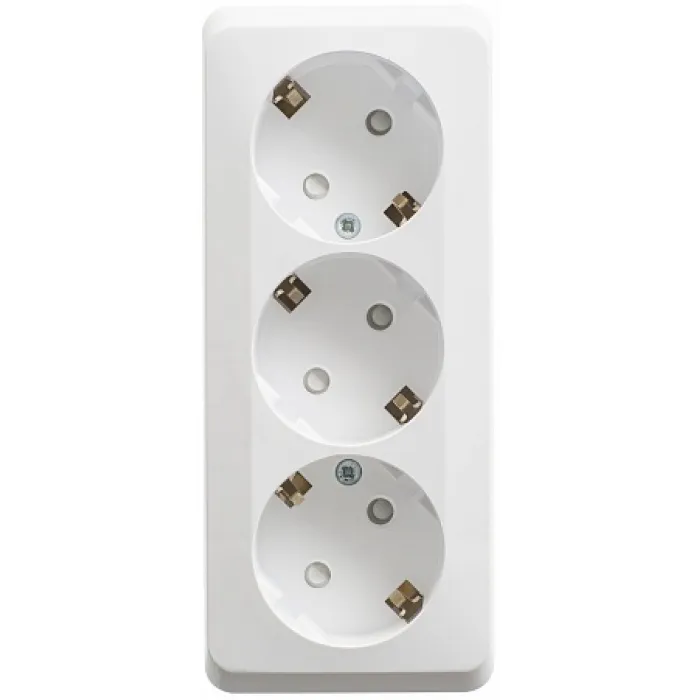 Розетка трехместная Schneider Electric ETUDE, открытый монтаж, с заземлением, со шторками, белый, PA16-012B, Нижний Новгород