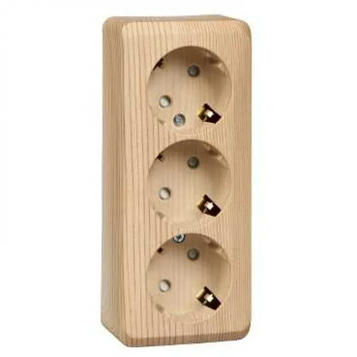 Розетка трехместная Schneider Electric ETUDE, открытый монтаж, с заземлением, со шторками, сосна, PA16-012D, Нижний Новгород