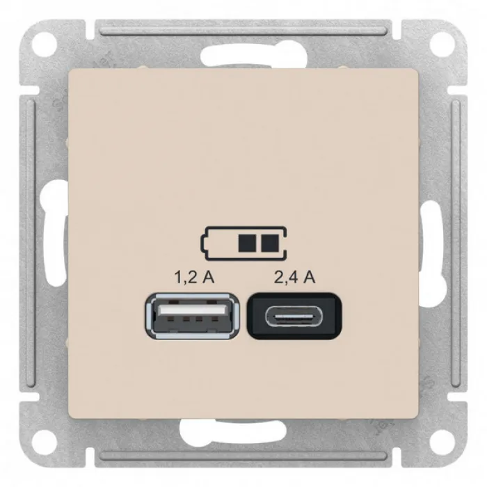 Розетка 2xUSB Schneider Electric ATLASDESIGN, скрытый монтаж, бежевый, ATN000239, Нижний Новгород