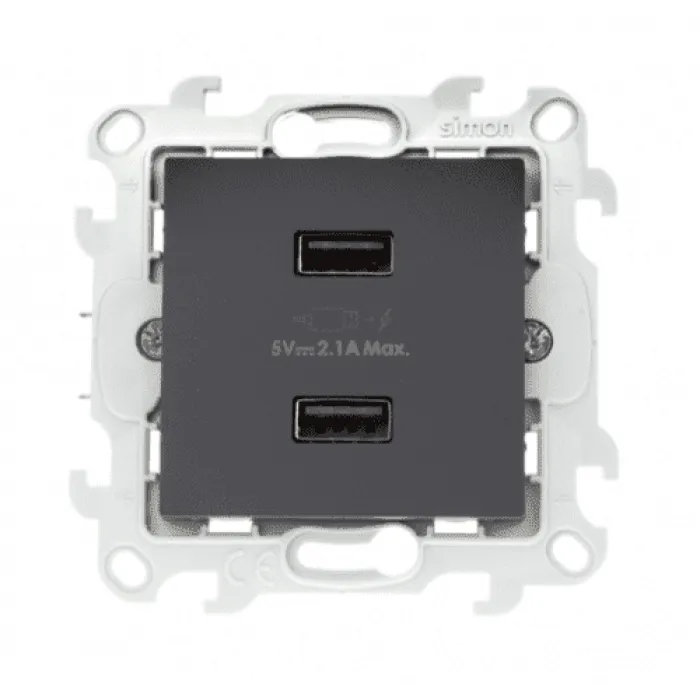 SIMON S24 Графит Зарядное устройство розетка 2хUSB, 2411096-038, Нижний Новгород