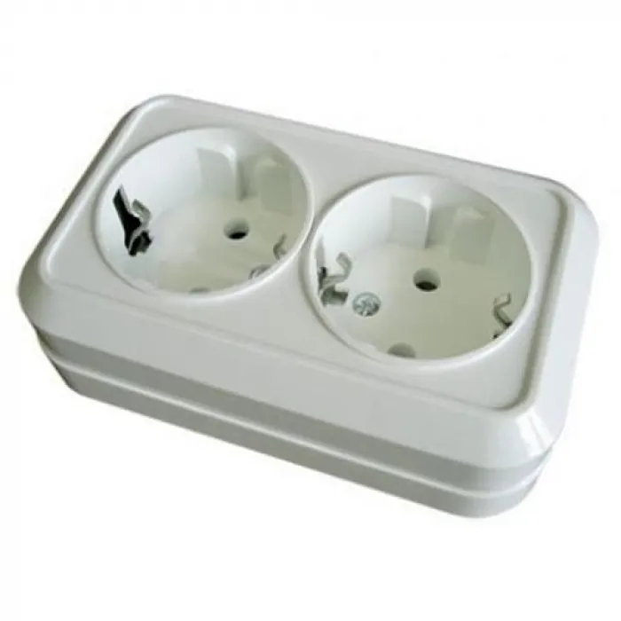 Розетка двухместная TDM ЛАДОГА, открытый монтаж, с заземлением, белый, SQ1801-0019, Нижний Новгород