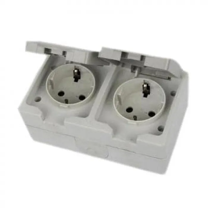 Розетка двухместная TDM ВУОКСА, открытый монтаж, с заземлением, серый, SQ1803-0008, Нижний Новгород