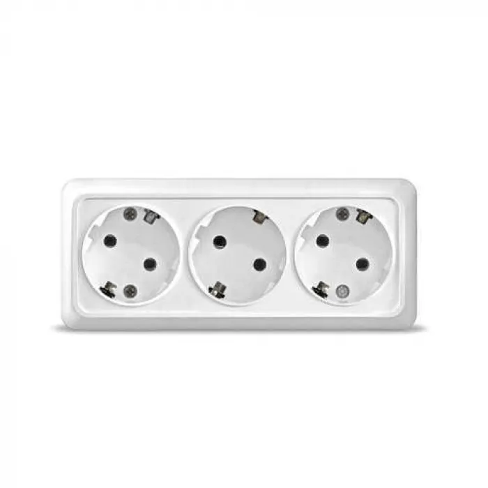 Розетка UNIVersal Олимп 3-местная ОП с заземляющими контактами 16А 220В белая 1161, Нижний Новгород