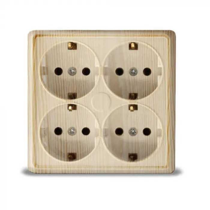Розетка UNIVersal Олимп 4-местная ОП с заземляющими контактами квадрат 16А 220В сосна 1177, Нижний Новгород