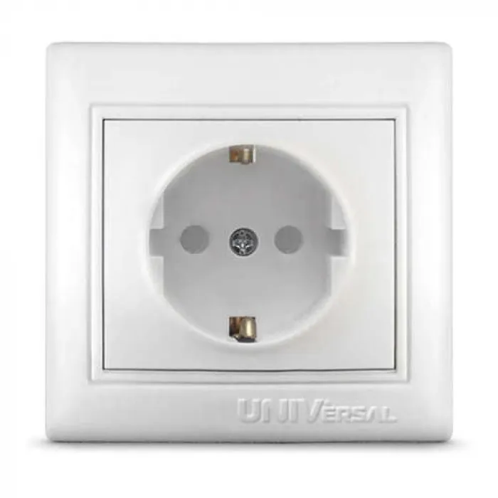Розетка UNIVersal Севиль с заземляющими контактами со шторками СП белая С0049, Нижний Новгород
