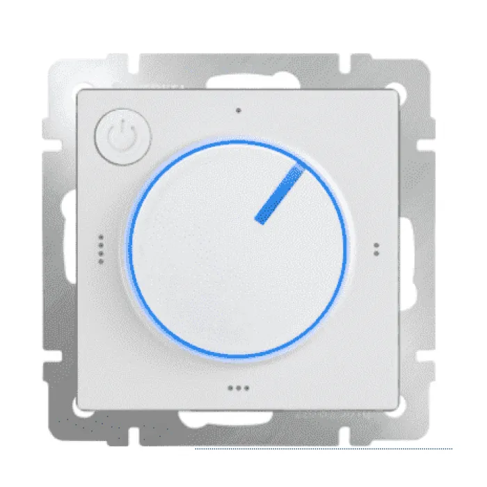 Терморегулятор электромеханический, белый WERKEL WL01-40-01 a039316 используется для регулировки температуры обогрева в системе "Теплый пол". Регулировочное колесико подсвечивается LED подсветкой (синий и красный свет), в зависимости от режима работы.