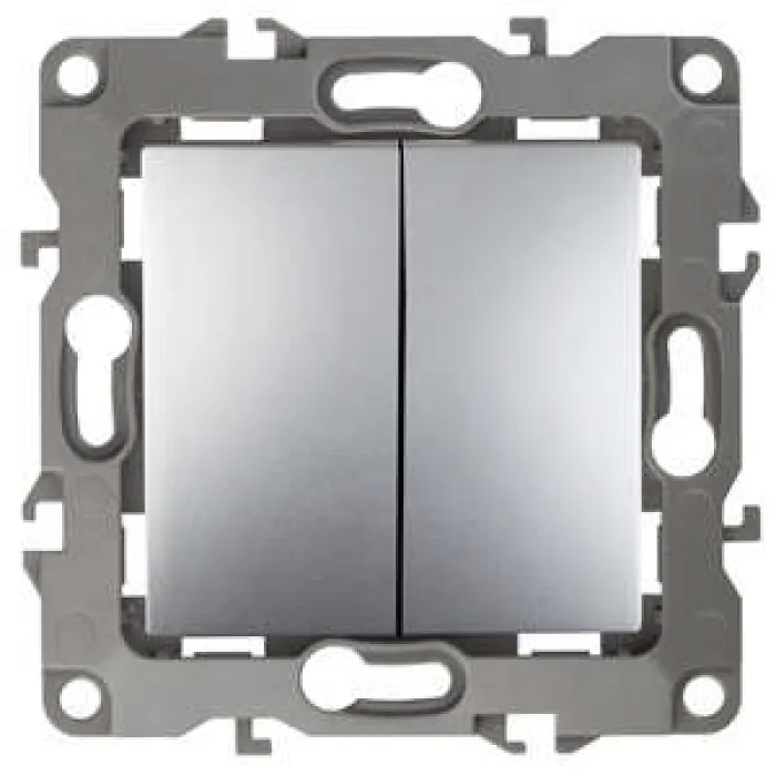 12-1106-03 ЭРА Переключатель двойной, 10АХ-250В, IP20, Эра12, алюминий - идеальное решение для электрических установок, где требуется надежное и удобное управление двумя электрическими цепями одновременно.