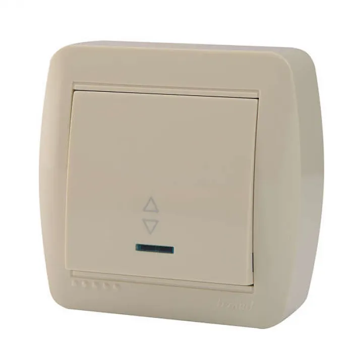 Особенностью данного выключателя является подсветка, которая позволяет легко найти его даже в темноте. Подсветка имеет кремовый оттенок, который придает интерьеру нежность и уют.
