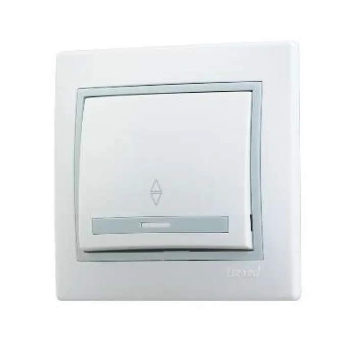 Выключатель одинарный проходной. Особенности заключаются в европейском дизайне. в повышенной безопасности негорючего поликарбонатного ПК-пластика. в более прочном и устойчивом к механическому воздействию покрытии. в простом монтаже и демонтаже.Напряжен