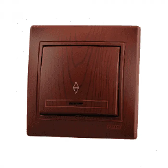 Выключатель проходной одинарный с подсветкой. Изделия с расцветкой «под дерево» изготовлены из покрашенного «под фактуру» пластика, а не оклеены цветной пленкой. Безопасные для рук крепежные выступы с пружиной и возвратом в исходное положение. Серебряные контакты, выполнены по стандарту из сплава. Опорна плата с маркировкой, на все изделия нанесены схемы электрического соединения. Надежные соединения с помощью шайб с насечкой. Простой монтаж и демонтаж. Нержавеющий металлический каркас. Защита