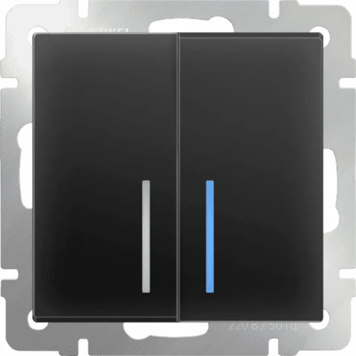 Выключатель механизм проходной Werkel 2-клавишный с подсветкой черный матовый WL08-SW-2G-2W-LED, Нижний Новгород