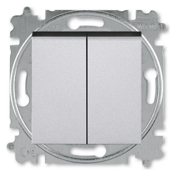 Выключатель 2-клавишный кнопочный ABB LEVIT, скрытый монтаж, серебро / дымчатый черный, 2CHH598745A6070, Нижний Новгород