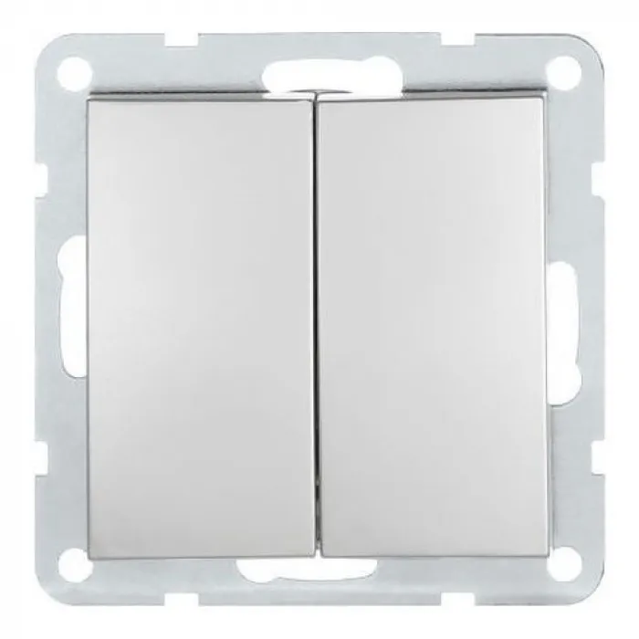 Дизайн выключателя выполнен в стильном серебристом металлическом оттенке, который прекрасно впишется в любой интерьер и добавит элегантности вашему помещению.