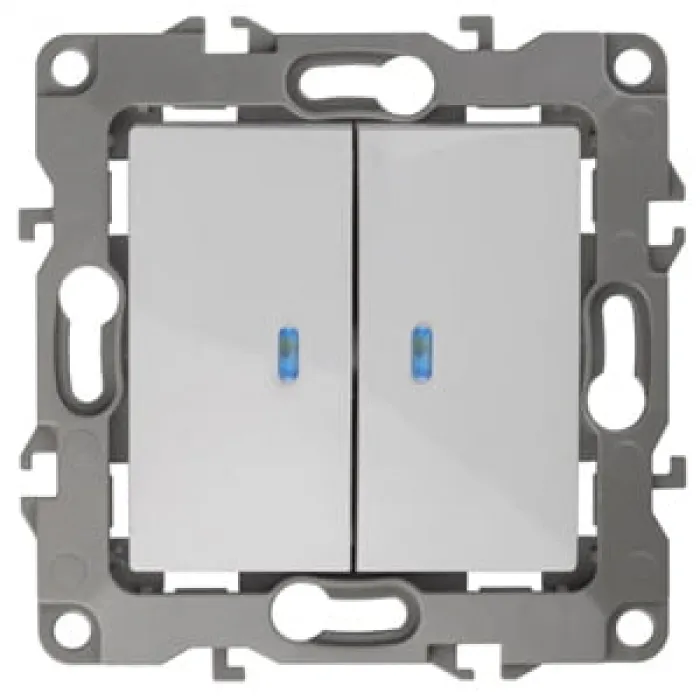 12-1105-01 ЭРА Выключатель двойной с подсветкой, 10АХ-250В, IP20, Эра12, белый, Нижний Новгород