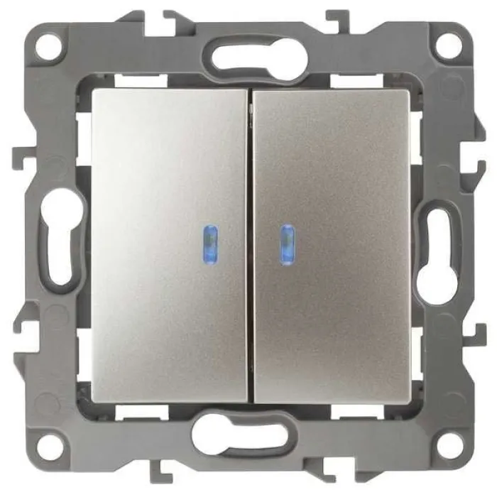 12-1105-04 ЭРА Выключатель двойной с подсветкой, 10АХ-250В, IP20, Эра12, шампань, Нижний Новгород