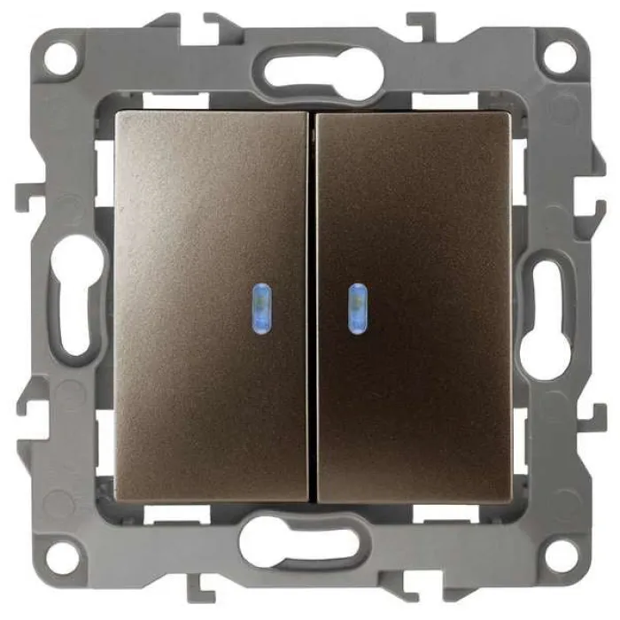 12-1105-13 ЭРА Выключатель двойной с подсветкой, 10АХ-250В, IP20, Эра12, бронза - идеальное решение для тех, кто ценит функциональность, безопасность и эстетическое качество в одном продукте.