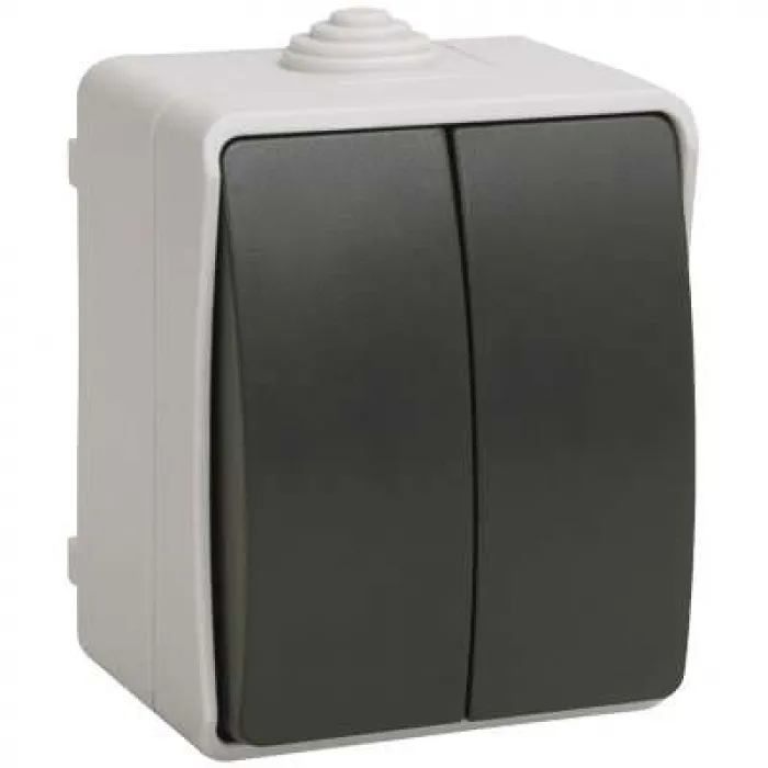 Выключатель 2-клавишный IEK ФОРС IP54, открытый монтаж, серый/темно-серый, EVS20-K03-10-54-DC, Нижний Новгород