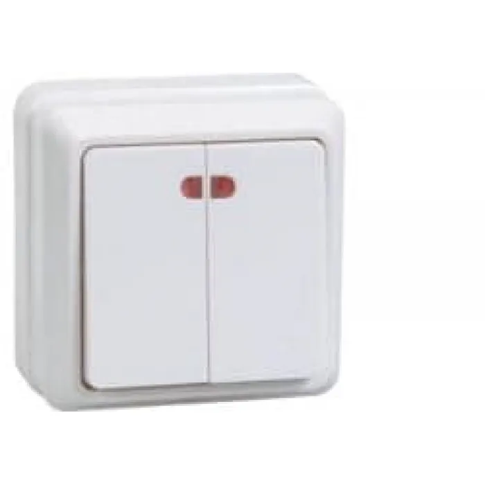 Выключатель 2-клавишный IEK ОКТАВА, с подсветкой, открытый монтаж, белый, EVO21-K01-10-DC, Нижний Новгород