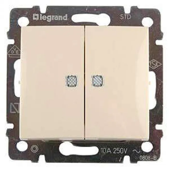 Выключатель 2-клавишный Legrand VALENA CLASSIC, с подсветкой, скрытый монтаж, слоновая кость, 695630, Нижний Новгород