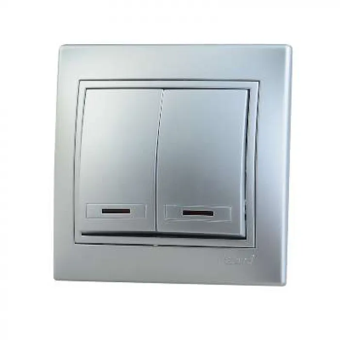 В нашем магазине Главэлектрика в Нижнем Новгороде, вы можете приобрести с доставкой по Нижнему Новгороду товар Выключатель Lezard Mira 2-клавишный с подсветкой С/П металлик серый 701-1010-112.