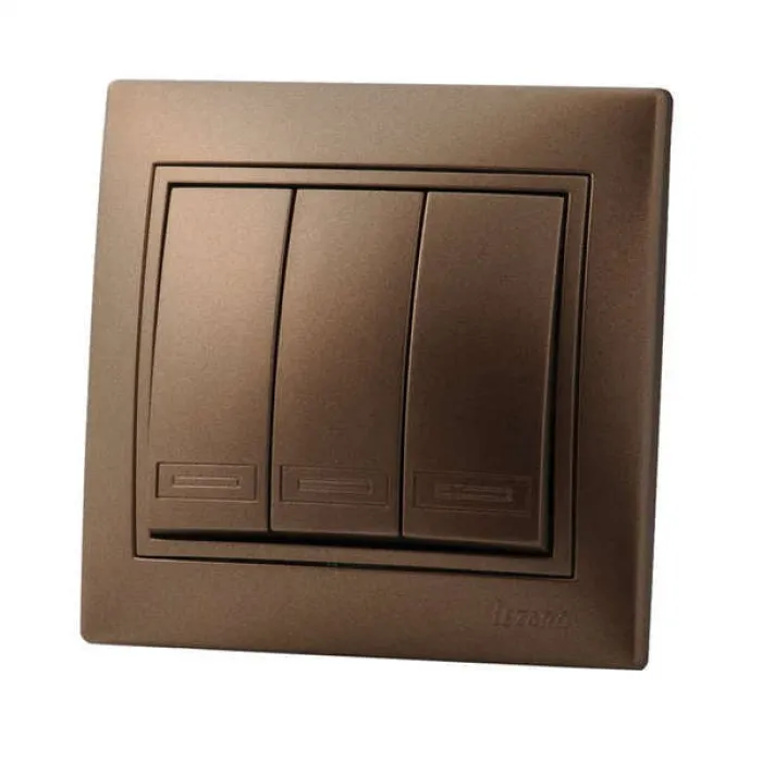 В нашем магазине Главэлектрика в Нижнем Новгороде, вы можете приобрести с доставкой по Нижнему Новгороду товар Выключатель Lezard Mira 3-клавишный С/П светло-коричневый перламутр 701-3131-109.