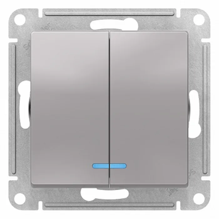 В нашем магазине Главэлектрика в Нижнем Новгороде, вы можете приобрести с доставкой по Нижнему Новгороду товар Выключатель 2-клавишный Schneider Electric ATLASDESIGN, с подсветкой, скрытый монтаж, алюминий, ATN000353.
