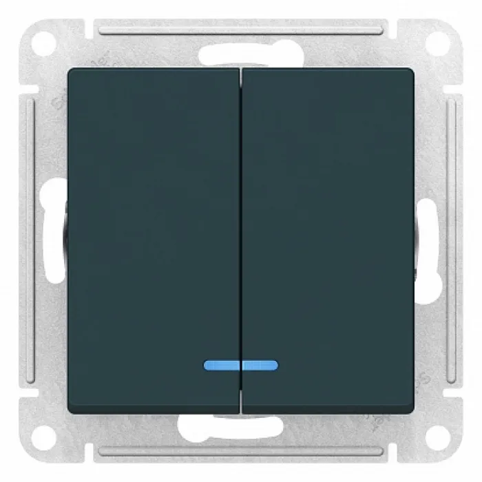 Выключатель 2-клавишный Schneider Electric ATLASDESIGN, с подсветкой, скрытый монтаж, изумруд, ATN000853, Нижний Новгород