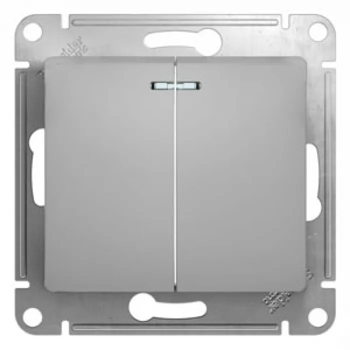 Выключатель 2-клавишный Schneider Electric GLOSSA, с подсветкой, скрытый монтаж, алюминий, GSL000353, Нижний Новгород