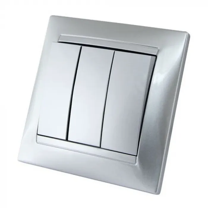 Выключатель 3-клавишный TDM ЛАМА, скрытый монтаж, серебряный металлик, SQ1815-0203, Нижний Новгород